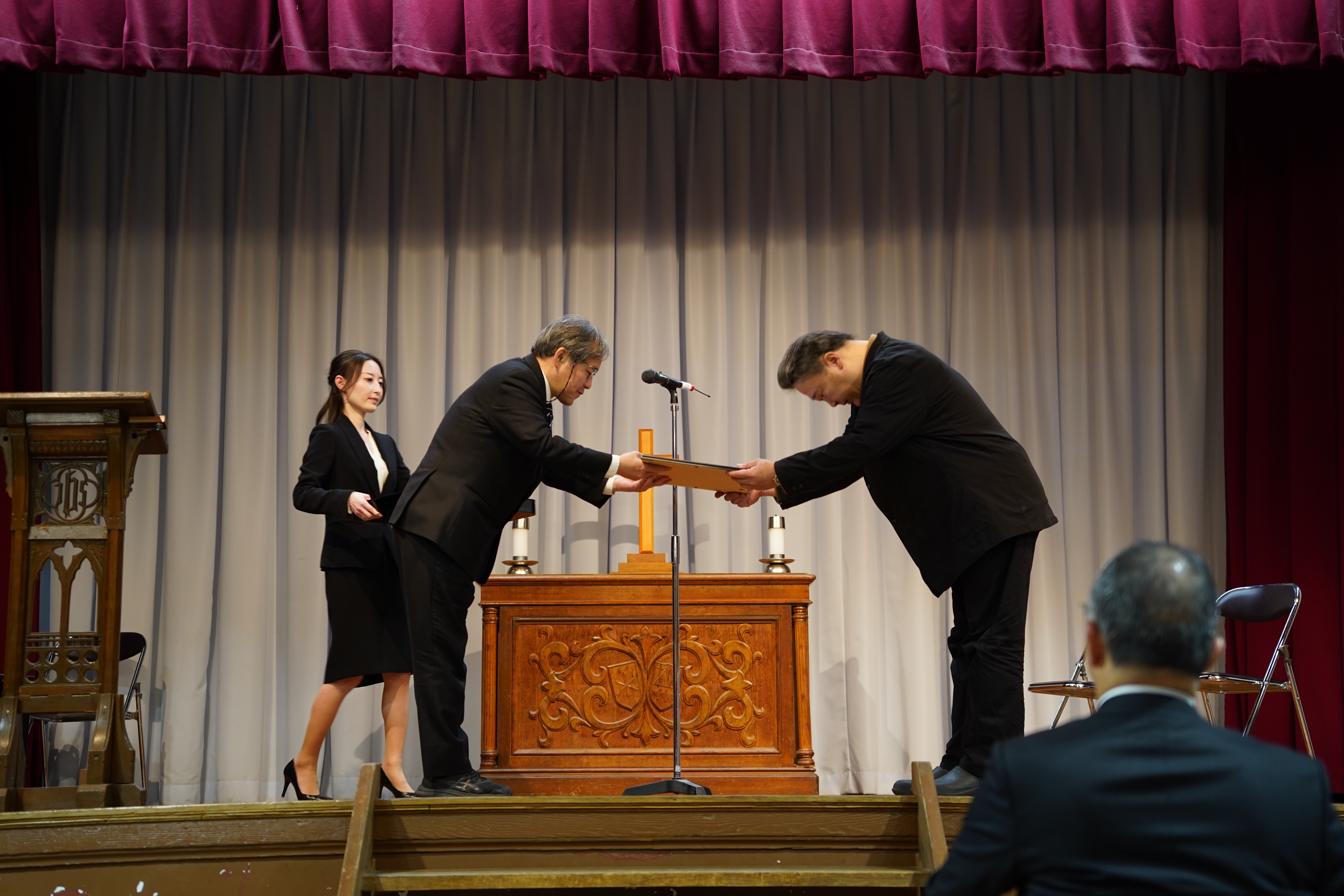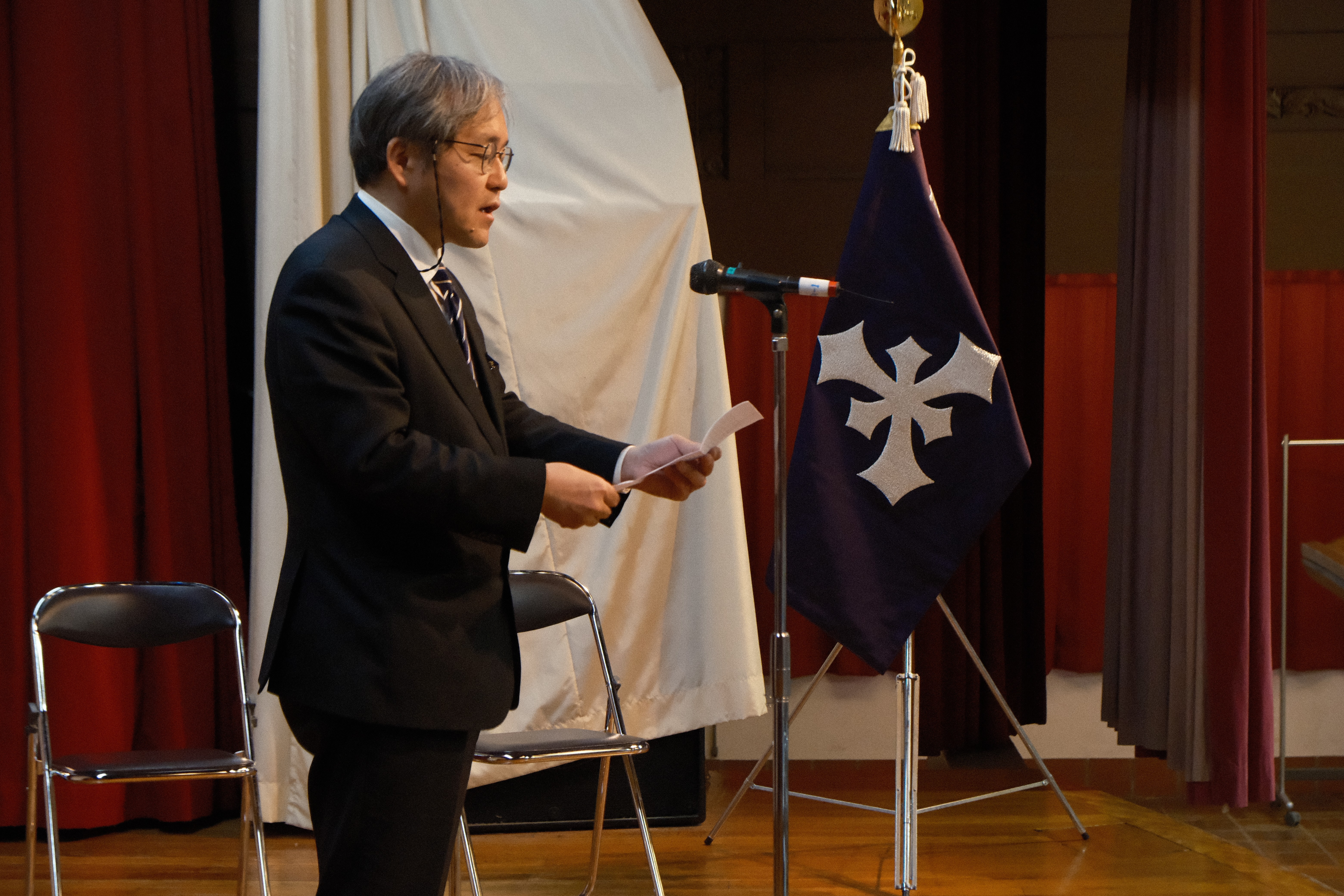 2026年1月21日(水)、京都キャンパスの平安女学院中学校高等学校アグネスホールにて、「平安女学院 創立151周年記念式典」を挙行しました。はじめに、聖公会京都教区の主教であり、本学の学院長でもある大岡 左代子主教補佐の司式により、記念礼拝がささげられました。続いて、毛利 憲一理事長が挨拶を述べ、永年勤続表彰の表彰式が行われました。ご出席いただいた皆様に、あらためて感謝申し上げます。今後とも本学院への一層のご支援とご声援を賜りますよう、お願い申し上げます。